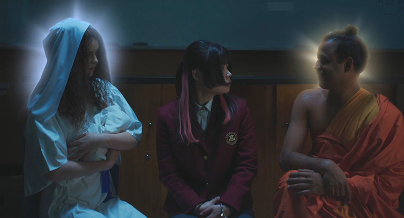 А до них у кинематографистов идёт всё неплохо, и хотя особенной постмодернистской колкостью, как это было у Крэйвена, сценарий не обладает, больше полагаясь на абсурдистский юмор, за счет отличного каста "химичащих" друг с другом молодых актрис и местами действительно забавно обыгранных "стандартных киноситуаций", лента смотрится легко и позитивно. Чего её авторы, как мне кажется, и добивались, хотя в конце чутка перестарались с откровенной комедийной глупостью :) Но эта ситуация довольно часто встречается в азиатских картинах, так что её вполне можно списать на культурные традиции региона, которые нам, впрочем, всё равно будут бросаться в глаза. Ибо европейский, или если брать глобально "западный" зритель, привык к чуть более "серьезной" подаче даже откровенно комедийного материала, и чуть более глубокой проработке сценария. В то время как азиаты работают, что называется, "по верхам", нисколько этого не стесняясь.
